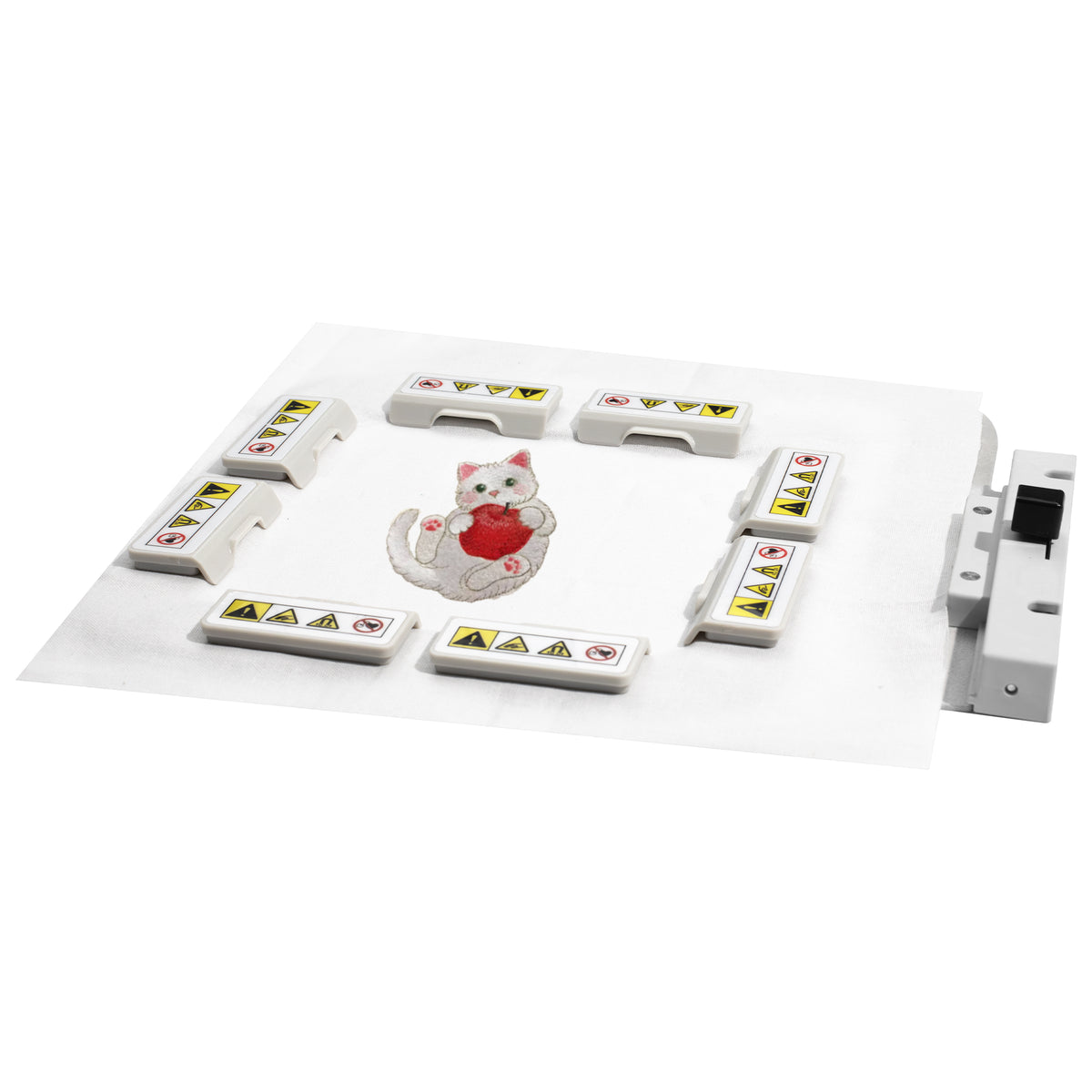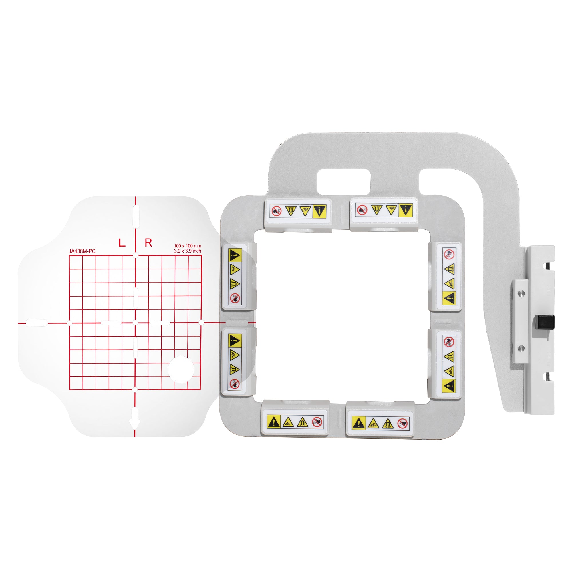 Sewtalent embroidery frame with easy adjustment feature using individual magnets for Janome MC400E embroidery machine