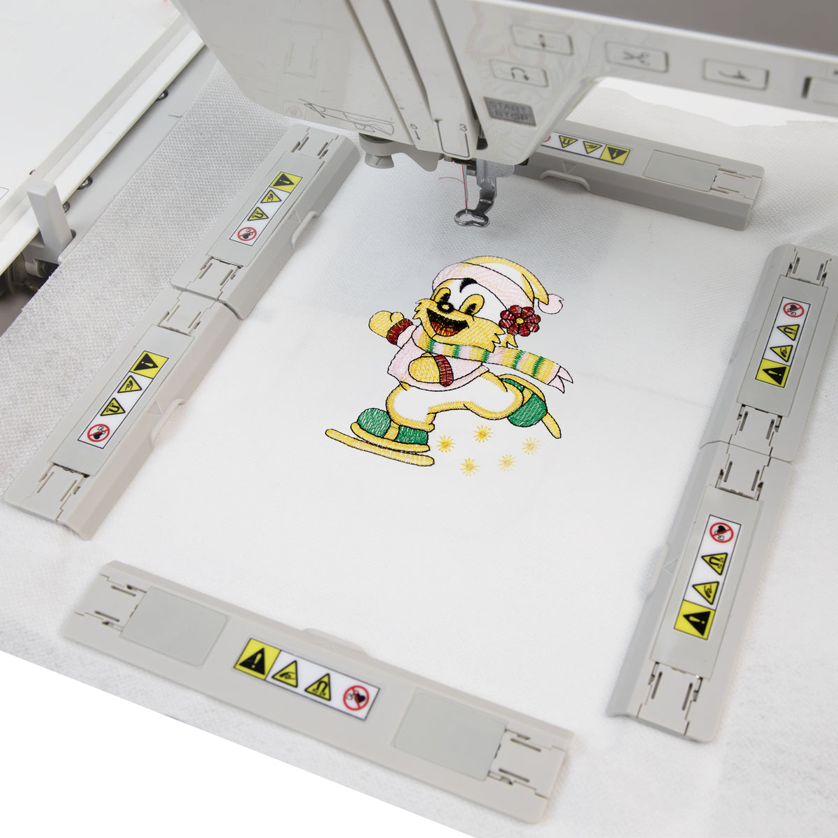 The Embroidery Hoop fits perfectly on the compatible Brother embroidery machines listed above.