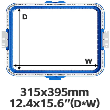 Las dimensiones del bastidor interior son 315 x 395 mm (12,4 x 15,6 pulgadas). El área de costura real mide aproximadamente 295 x 375 mm (11,6 x 14,8 pulgadas).