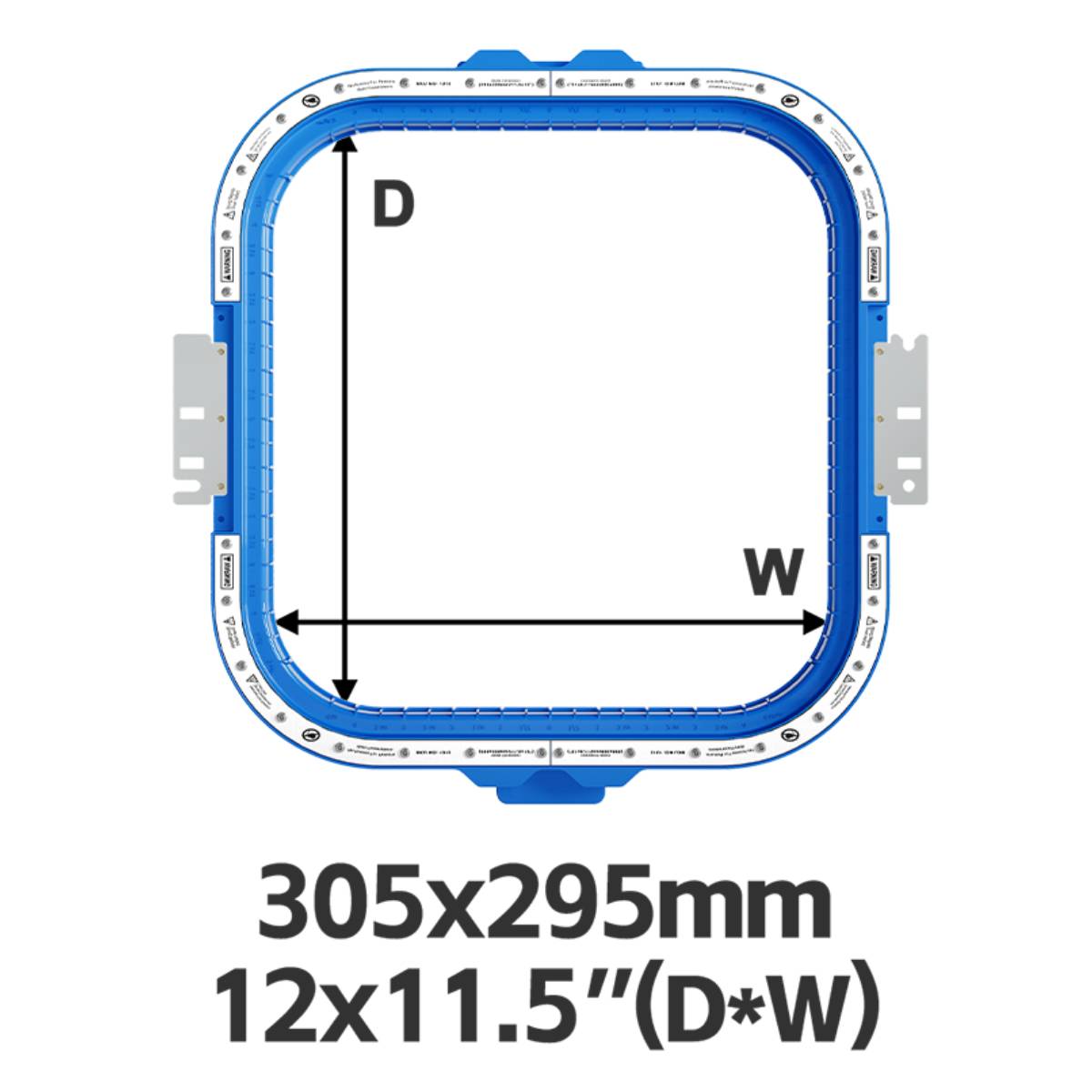 305 x 295 mm (12 x 11,5 pulgadas) se refiere a la dimensión del bastidor interior. El área de costura real mide aproximadamente 285 x 275 mm (11,2 x 10,7 pulgadas).