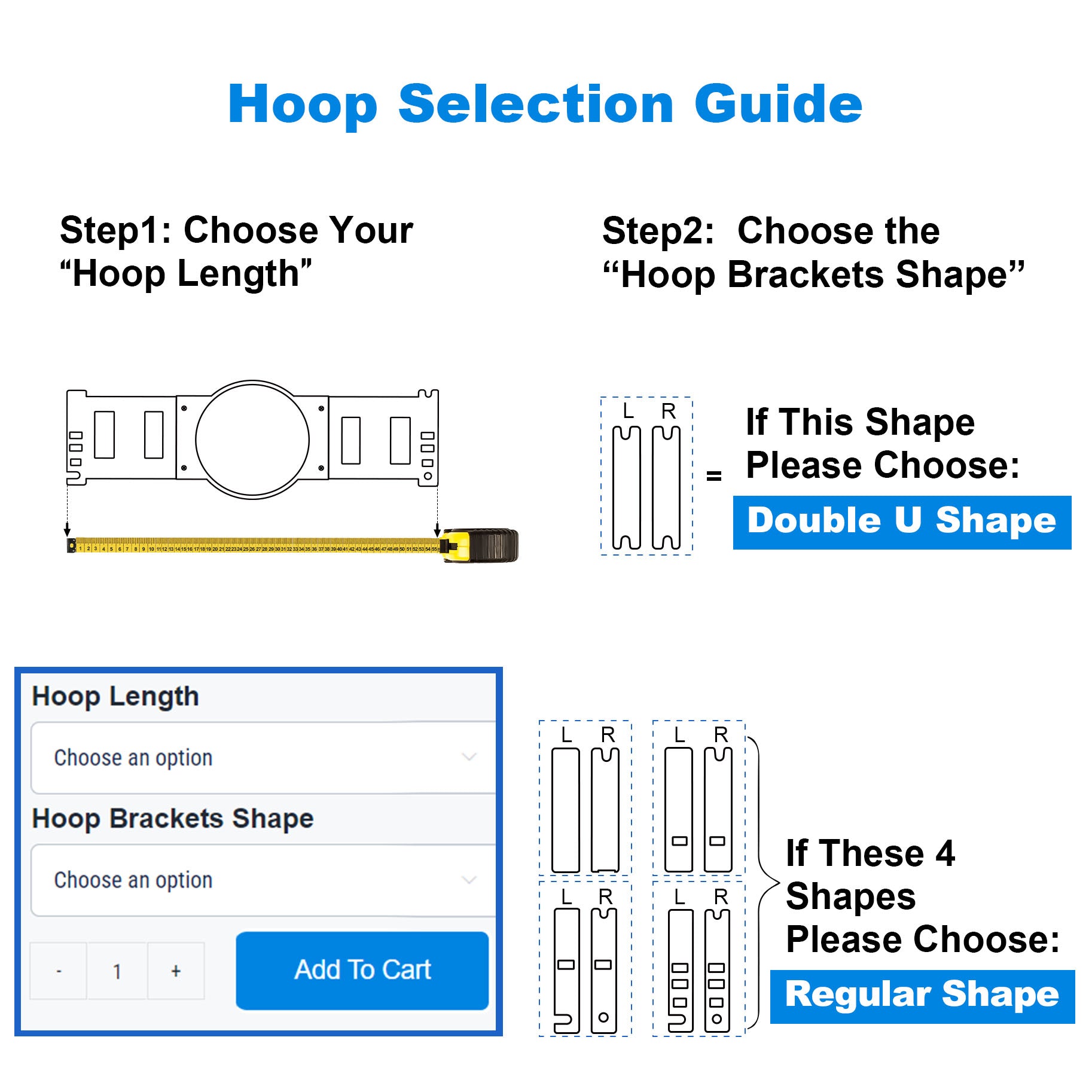 A1: La longitud del bastidor se refiere a la longitud desde el soporte izquierdo hasta el soporte derecho del bastidor estándar (bastidor de plástico) que viene con su máquina. Simplemente mida el bastidor estándar de la máquina para obtener la longitud del bastidor (las fotos son de referencia).