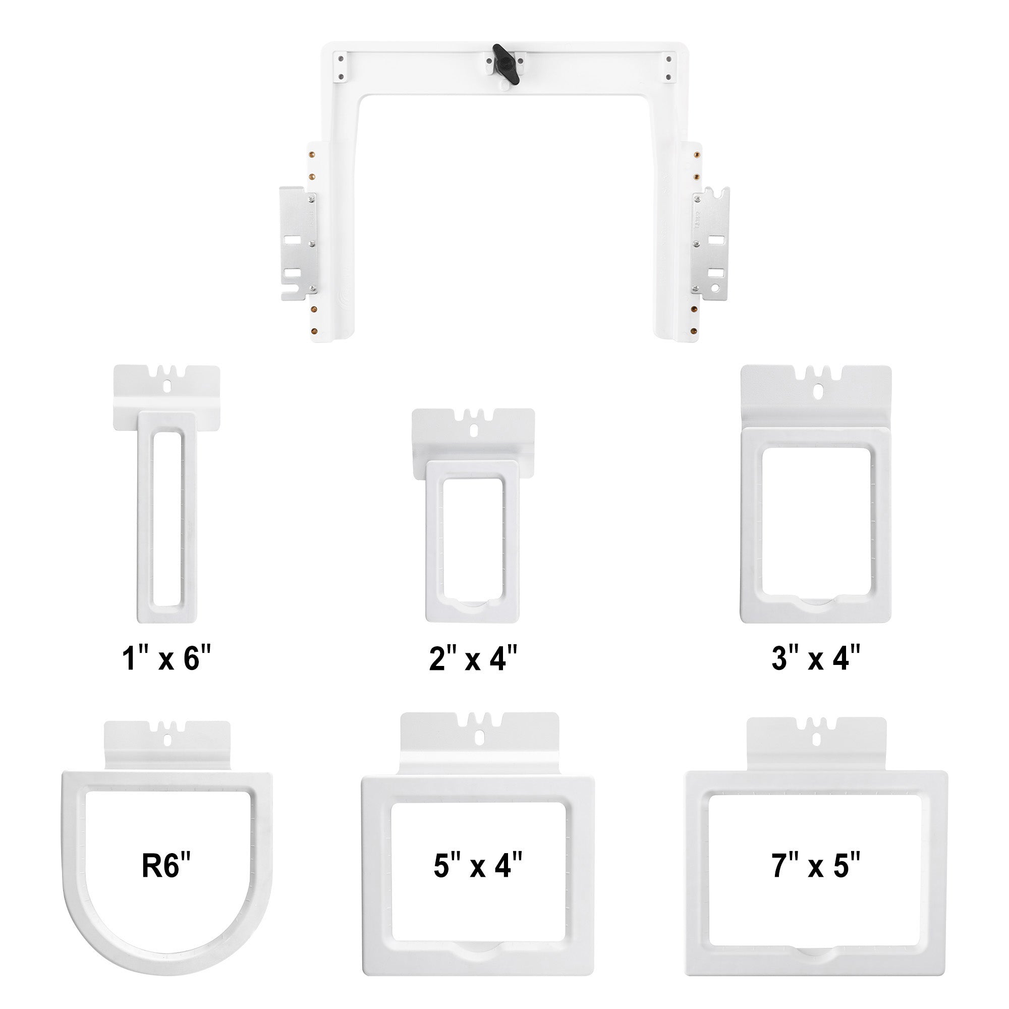 • R6″: It’s called cap hooping 8 in 1 because It is used for back and sides of caps, buckets caps, cuffs of sleeves, collar tips, ribbons etc.