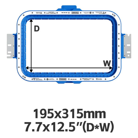 7.7″x12.5″(195x315mm) refers to the inner hoop dimension. The actual sewing field is about 6.9″x11.7″(175x295mm).